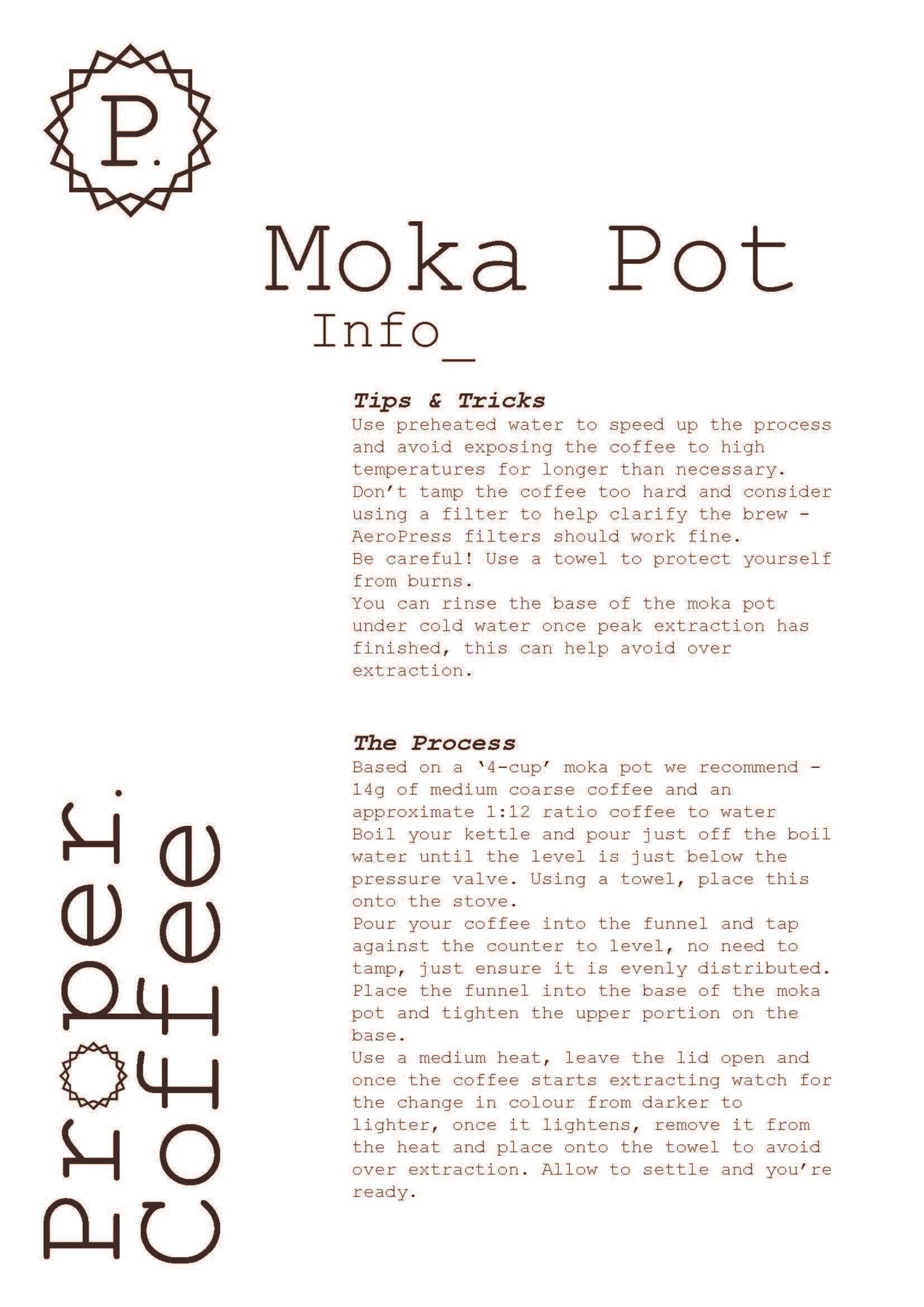 The Moka pot is about the closest you can get to an espresso like extraction without the espresso machine. Although it isn't quite an espresso, you can use the guide we've provided to achieve a rich concentrated coffee liquor and, using that as the base for your coffee, manipulate it into all your familiar favourite drinks.
